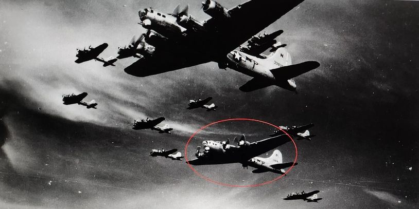 • During several of our conversation, Robert mentioned heavy flak over Germany.  We don't know when the photo was taken or if Robert is at the controls (as shown here).